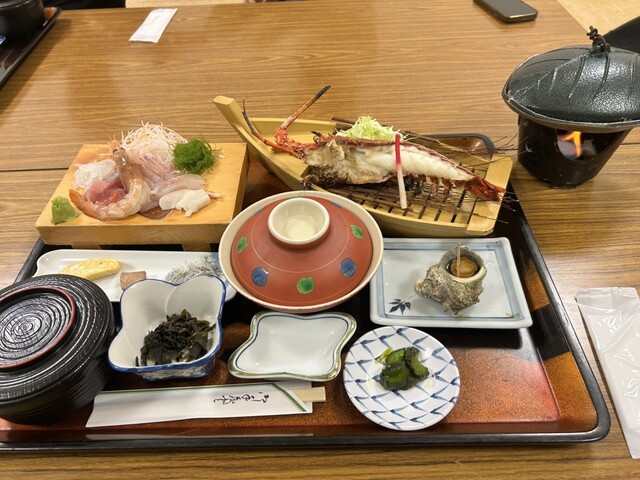 伊勢海老浜焼き御膳、黒潮御膳、天丼を頼みました。
