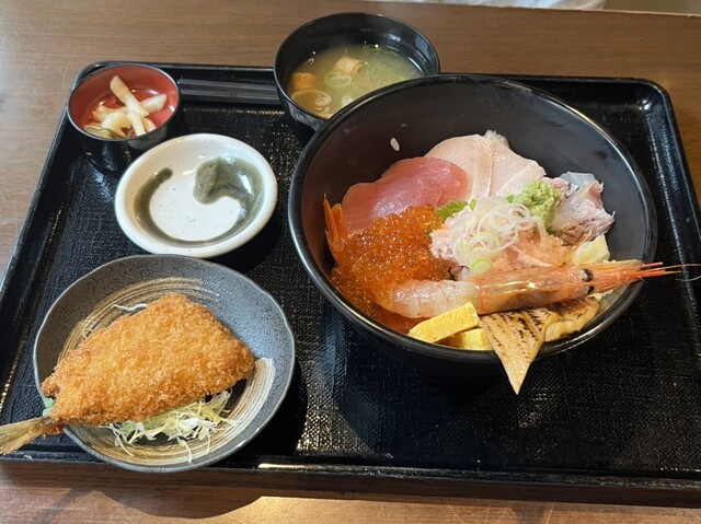 妻:海鮮丼定食+ミニアジフライ