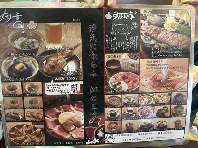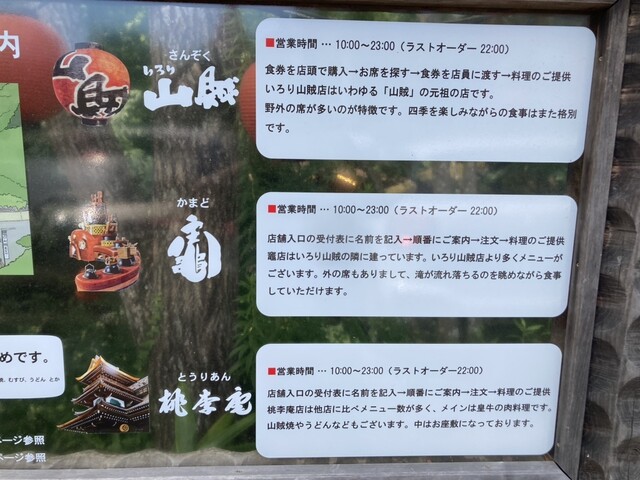 薄暗い山道を進んでいくと突然明るくなり、太鼓の音が響いていました。駐車場は満車。こんな山奥に店?と思うような不思議な場所です。注文した後は好きな場所に座って待ちます。色んな席があり、これもびっくり。私は古民家の囲炉裏のそばにしました。山賊焼きなる手羽モモ肉を炭火で焼く様子が見えました。山賊むすび…超デカい。山賊焼きをガブリ。まさに山賊になった気分。ジューシー!今度は夜に来たいです。