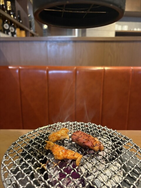 炭火の七輪でいただく本格焼肉。しかも、煙は全てロースターが吸い込んでくれます。