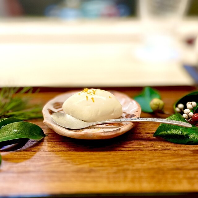 ✳︎練乳のアイスに落花生のジャム おおまさりを磨り下ろしたものをトッピング