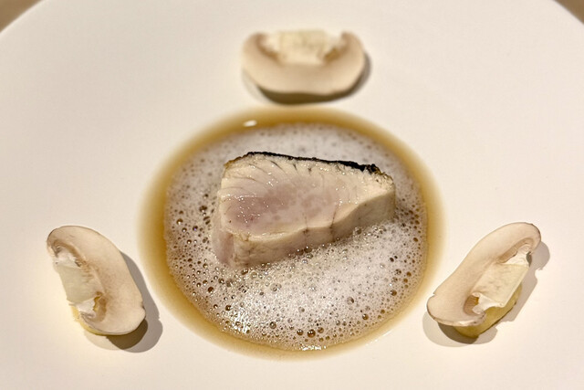 三重県産トロ鰆 白トリュフの泡 じゃがいもをベースにイデアサバルチーズを練り込んだニョッキ ハモンセラーノとマッシュルームのソース