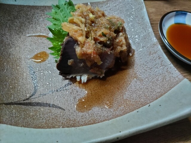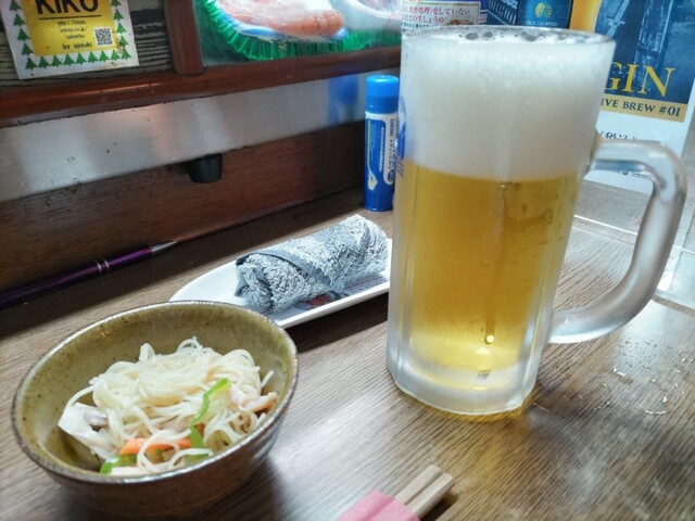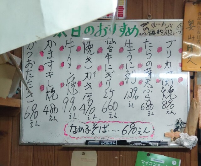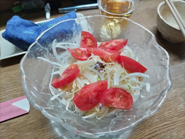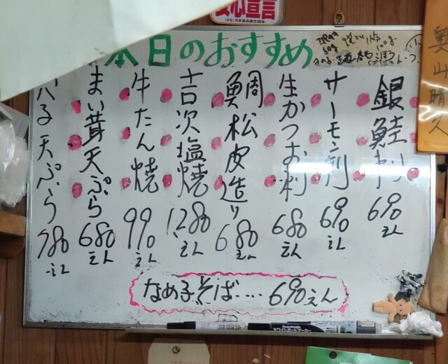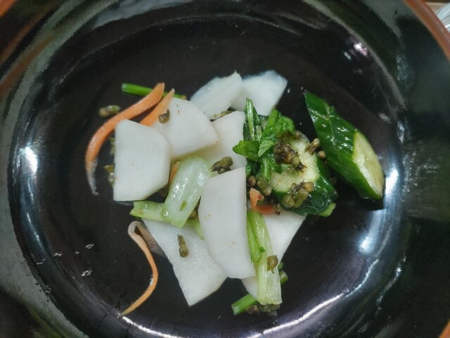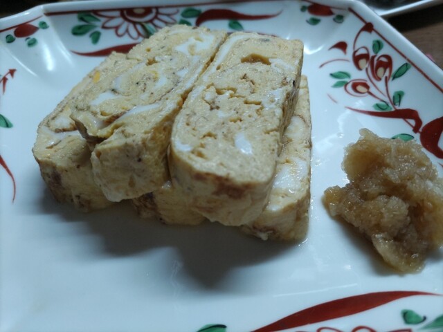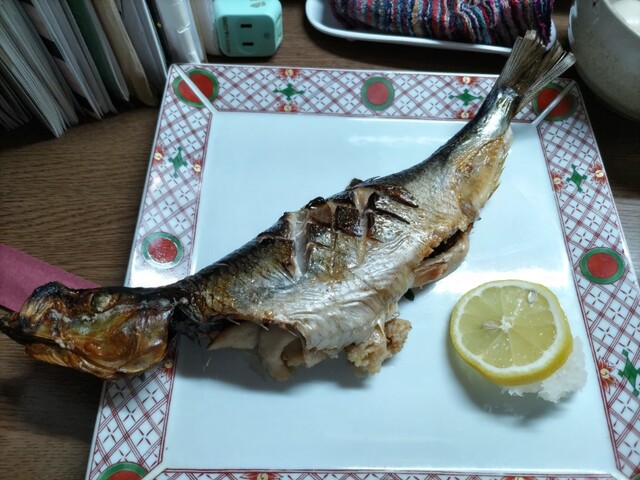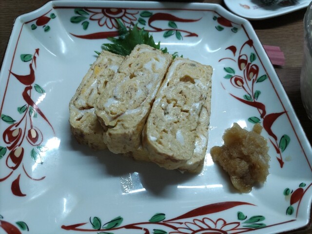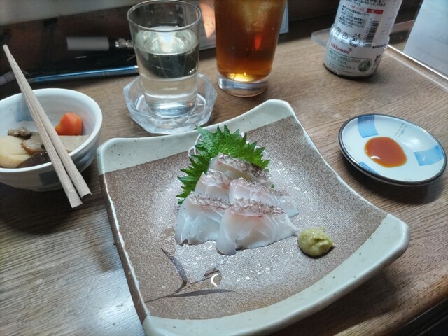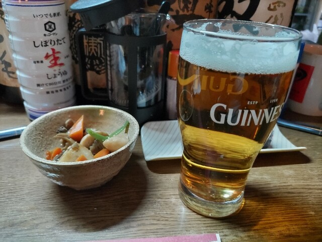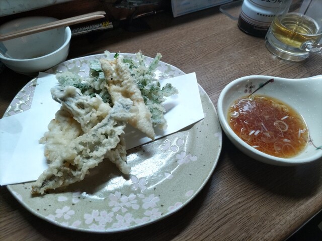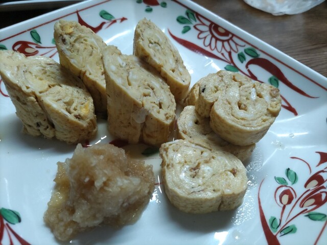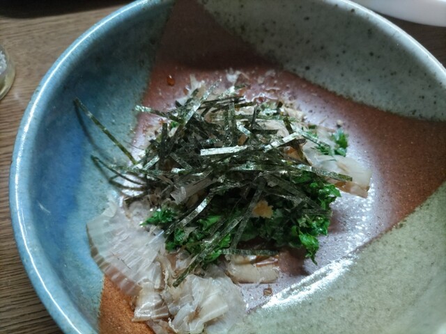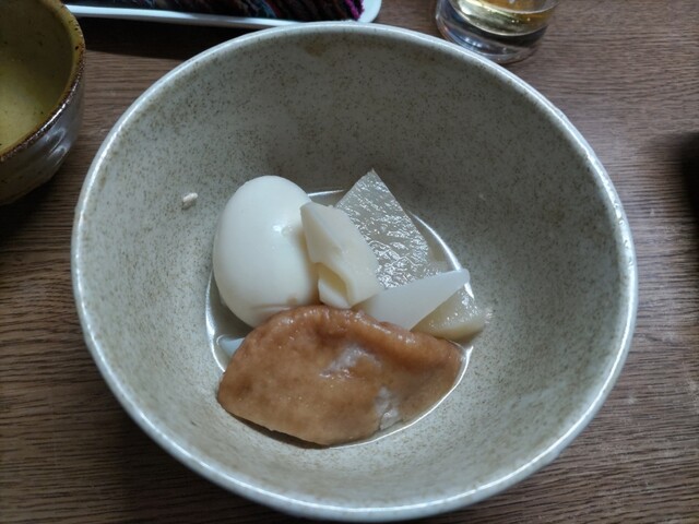 春らしいメニュー。お通しは菜と豆腐を和えたもの。刺し身は鯛、焼き物は卵がたっぷり詰まったニシン。まだまだ寒いので、おでんをサービスで貰った。本当は日本酒だったなぁ。