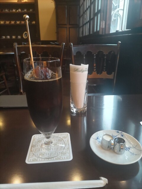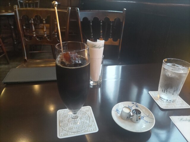 3月23日(日)、三越で用足しした後に、せっかくなのでホシヤマ珈琲店本店を訪れる。店内は相変わらず落ち着いた雰囲気で、禁煙側のテーブル席につく。この日は気温18度位で暑いくらい。アイスコーヒーが良いなと思い、メニューを見て水出しコーヒーが目に入る。涼し気なグラスに入った水出しアイスコーヒーは、ブラックでもほんのり柔らかいというとでも言うのでしょうか、心地よい味でした。その後、汗が引いたのとカップが見たいのとでロイヤルブレンドコーヒーを注文する。カップはウェッジウッドだった。