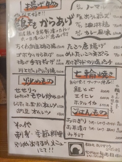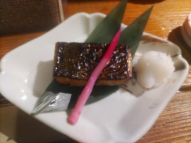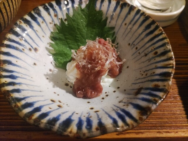6月6日(金)、仕事も終わり、いつもと違う町に繰り出そうと一関市に。案の定、仕事が終わるのが予定より遅くなってしまって、予約入れないで突撃したお目当ての店はいっぱいで断られてしまった。でも飲み屋はたくさんあるので、地図を見ながら当たりをつけて、入った店が「隠れ酒場もぐら」さん。やっぱりいっぱいか?と思ったら、カウンター席に通されほっと一息。最初はビールか?と思ったけど、お酒もたくさんあるので写すの失敗しましたが、青森のお酒を注文。硝子の涼しげなぐい呑みに注いでくれます。肴は今日のおすすめのサワラ幽庵焼、名物牛もつ煮、すぐ出る塩キャベツ、珍味チーズ酒盗、いわい鶏の味わい深いせせり焼きを注文しました。どれもこれも美味しくて当たりでした。2杯目はカウンターの上に貼ってあった赤武の翡翠を注文。瓶も涼しげで、いかにも夏酒。カウンターの隣にいらしたお客さんはマスターに親しく声を掛けて、聞いていて和む。いい雰囲気のお店でした。