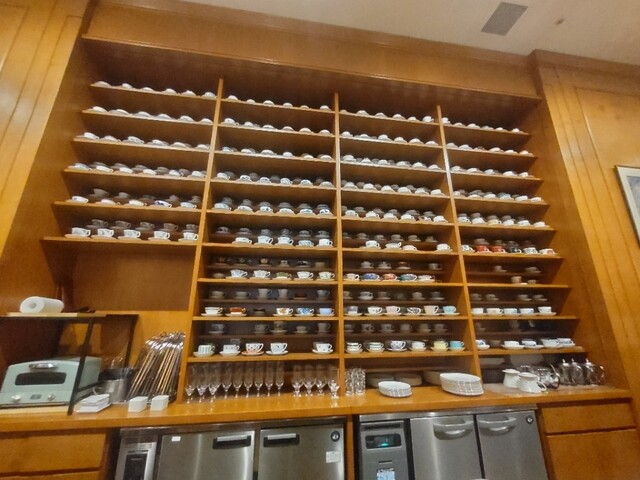 カウンター席からカップアンドソーサーを見る。