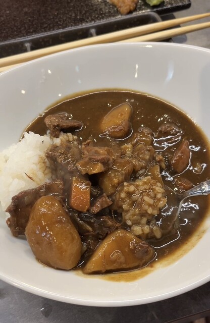 カレーの虎監修のカレーは食べ進めると割と辛いほうなのかな?ほどよく旨辛‼︎ホカホカご飯は土鍋で炊かれています。