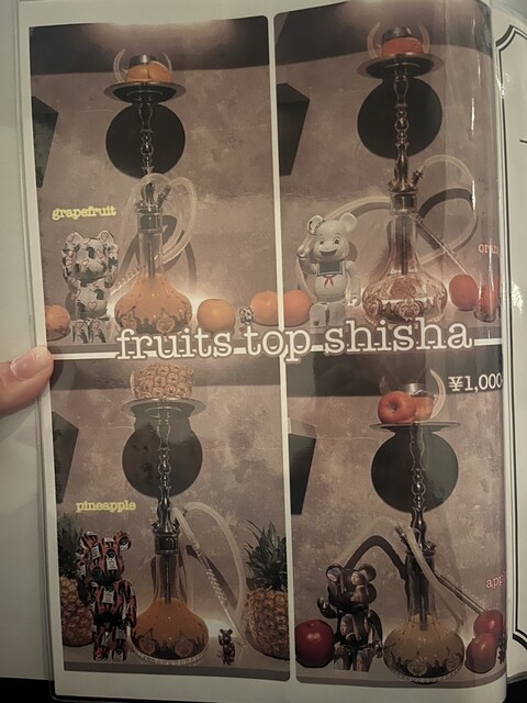 主役のシーシャは、+¥1000でフルーツトップも選べて、