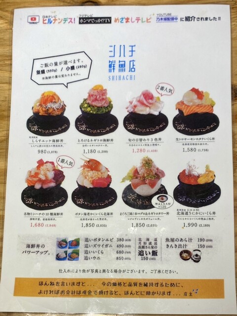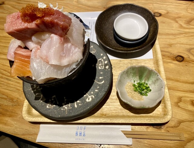 1番人気の「名物シハチの10種海鮮丼」ライスは小盛り