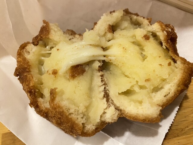 だんだん調子に乗って来て、次にチーじゃが220円をオーダー✨こちらも揚げたてのあげいもにとろ〜りチーズお芋部分がほんのり甘くてとても美味しかったです!その場で食べるならチーじゃががおすすめかな。