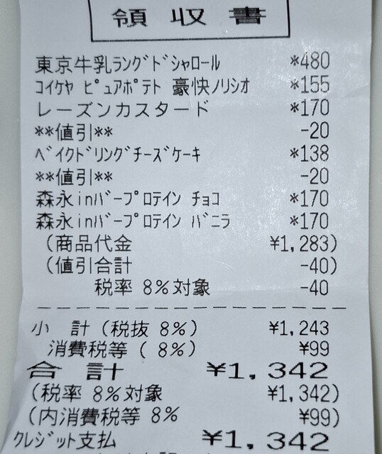 〔¥ 決済 ¥【VISA】税込『1,342』円 ( ※ 合計値引『-40』円)〕