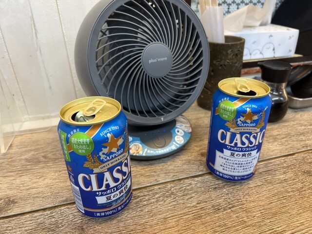 ビールも頼み、夏限定のサッポロクラシックの缶ビールで乾杯!