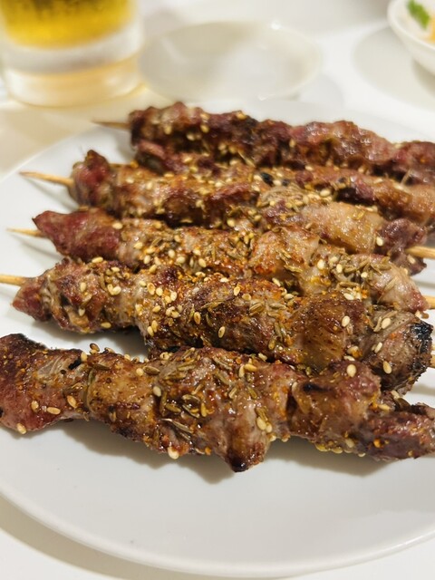 まずは大好き羊串から、このクミンとかのスパイスがうまいんだよな~