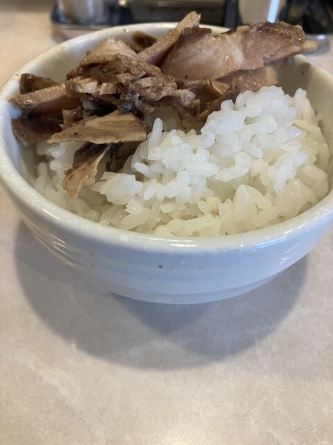 ごはんは風味と食感良い細切りチャーシューが乗っているのが嬉しい、そしてごはん自体も美味いです。