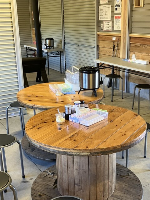 お店の雰囲気ですが、ガレージにテーブルって雰囲気が俺的に刺さる!