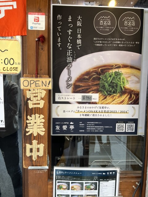 ミナミをぶらぶらしていてお腹減ったのでラーメンたべたぁいと思いつくのはやっぱり友愛亭さん。チャーシュー丼も食べたかったので伺いました。お昼も過ぎていたけれどやはり並んでいます。20分程待ってテーブルに案内されました。いつもの右ストレートです。いつもの美味しさ。堪能しながら頂きました。美味しかったです。おご馳走様でした。