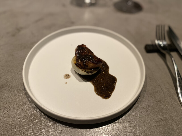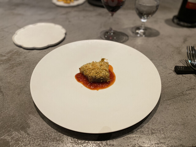 最初のコロンは毛蟹、キャビア、トリュフが混ざり合う高級ジャンクフードな超美味しい奴で一口で味わいました。ツナとクリームチーズのタルトは、各種ハーブと一緒に味わう事が出来て、此方も高級ジャンクな感じ。ムール貝とジャガイモのキュイソンエキュームは、未だ暑いこの時期に食欲が湧く冷製で、貝のエキスがムンムンの泡と一緒。赤ムツと雲丹のリゾットは、トリュフソースと混ぜると超絶品の一心不乱にガッツいてしまう超美味な奴。天城黒豚バラ肉のパン粉焼きは脂が絶品で後半にガラムマサラ少し混ぜるてもイケる超絶の品。兎肉とフォアグラのファルシ山葡萄ソースは、柔らかく調理された兎肉、濃厚なフォアグラを爽やかな酸味の山葡萄ソースと一緒に頂き、ペロリと完食。〆にシェフスペシャルの濃厚な出汁で仕上げたパエリアを堪能。デザートの黒無花果のコンポート、更にラムがムンムンのトリュフチョコで仕上がりました。ペアリングしたワインは幾つか写真とり忘れました。