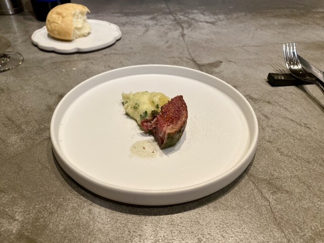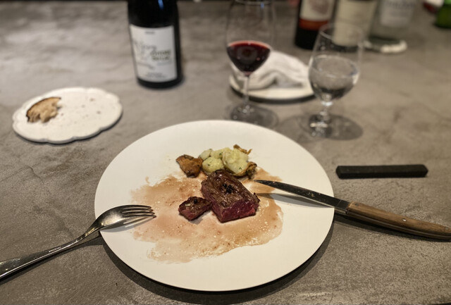 今回はオマールブルーコースを注文。品数を減らし、単品単品のクオリティを更に磨き上げた内容。いつもながら、素材の自然な味を最大限際立たせるべく、塩味は控えめ、ハーブやスパイスでさりげなくアクセントを付けて。毛蟹とキャビアとサマートリュフのコロン、自家製ツナとクリームチーズ、オマールブルーサラダとオマールブルーとトマトソースの主菜に加え、山羊肉、ヘレフォード牛(だったかな?)のハラミステーキ、更には拘りチーズとサマートリュフのリゾットを追加して、大満足。お酒とデザートは写真撮り忘れましたが、料理に合わせたペアリングで泡、白、ロゼ、赤、食後酒と手抜かり無し。オーナーシェフとマダムと楽しい会話も有り、ひっそりとしながらもワイガヤな素晴らしいお店。出会えて良かった大人の魅力満載のお店。