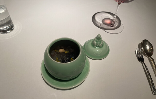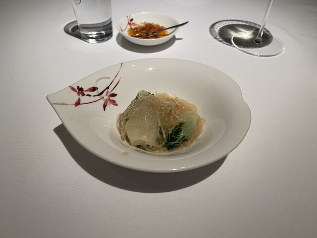 コースをお願いしたところ、早過ぎず、遅過ぎずの素晴らしいペース配分でお食事を供して頂けました。春巻きから始まり、前半は魚介類、後半からお肉類にシフト。凄く優しい味付けで油ギトギトでは無い、確りと手間暇かけて調理頂いている事がよく分かりました。ソムリエさんもスタッフの方もプロフェッショナルで家族皆が安心して、楽しむ事が出来ました。
