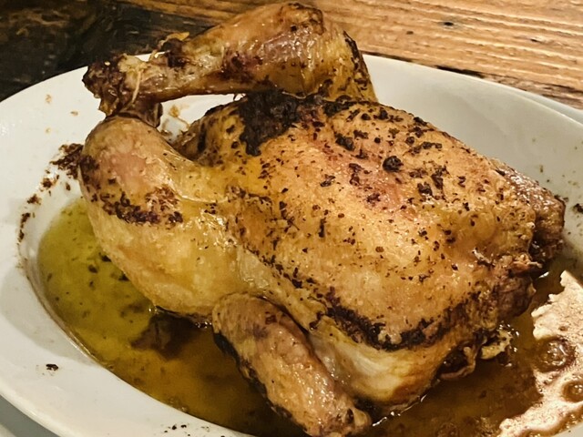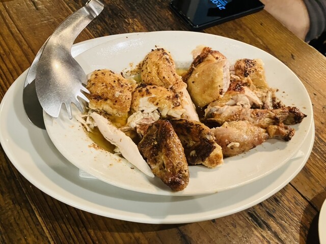 先ほどのローストチキンをほぐしてバターソースと絡めて食べても格別。