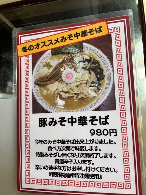 【メニュー】豚みそ中華そば@980、