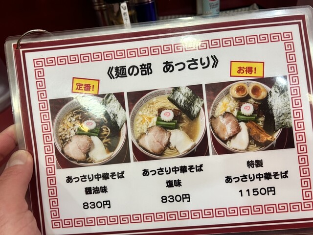 【メニュー】あっさり中華そば@940、大盛り@150