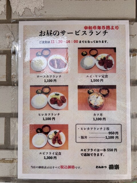 【メニュー】ロースカツランチ@1100、