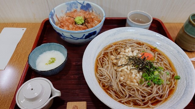 そばは変更できるので、今回は「かけとろろそば(温)」にしてもらいました。