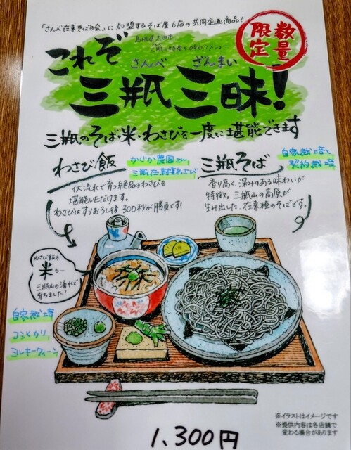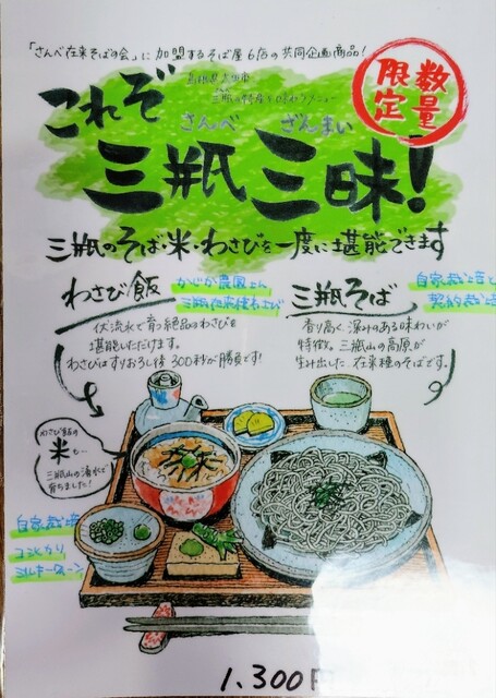今回も…てか、いつもですけど、「三瓶そば」「三瓶わさび」「三瓶のお米」が一度に堪能できる、