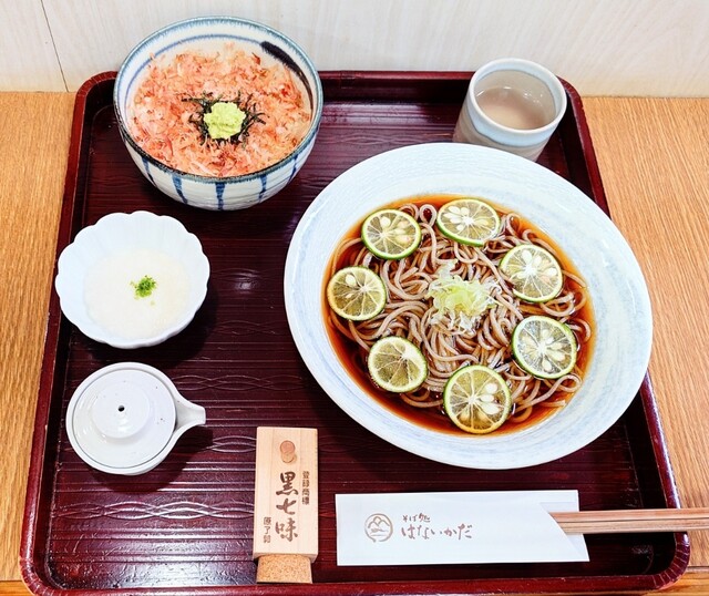 「すだちそば(冷)」で納涼三昧❗️「三瓶(さんべ)三昧セット」で「三瓶わさび」と「三瓶のお米」をおいしく堪能(●´ϖ`●)ボクの町のおそば屋さん⭕️
