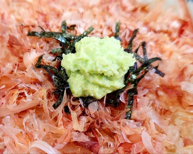 「わさび飯」にトッピングされた「三瓶わさび」