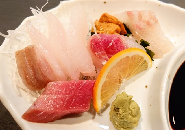 刺身の盛り合わせは、いつもきれいで丁寧な盛り付けをされていて、旬の時季の魚を出されています。