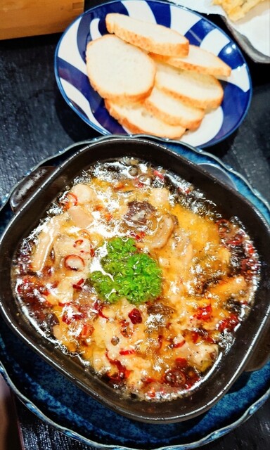 「カキとチーズのアヒージョ」は、前回は「砂ズリアヒージョ」をいただいたので、今回はコチラにしました。