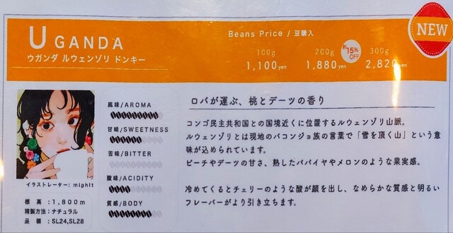「ウガンダ ルウェンゾリ ドンキー」コーヒーは、甘味を感じ、風味、質感強めで、コーヒー感濃いめな感じの、おいしいコーヒーです。