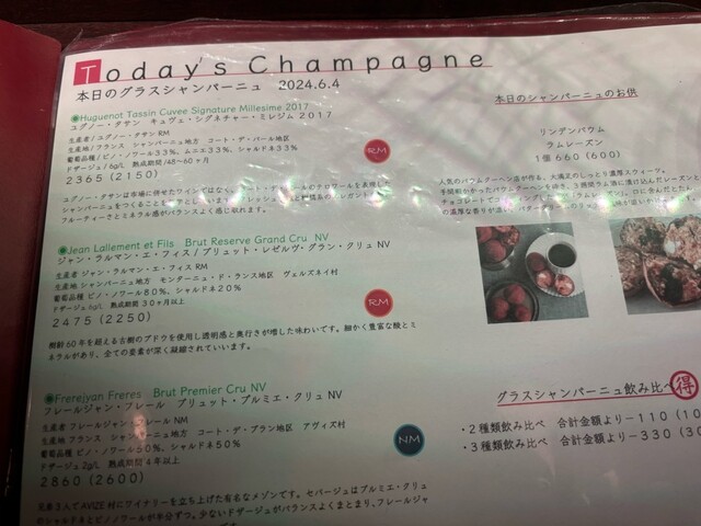 なかなか味わえないシャンパーニュを気軽に楽しめます。