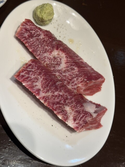 和牛ハラミサガリ→ハラミはもちろんサガリの細かい包丁が食べやすくて凄い。タレもしみしみ。