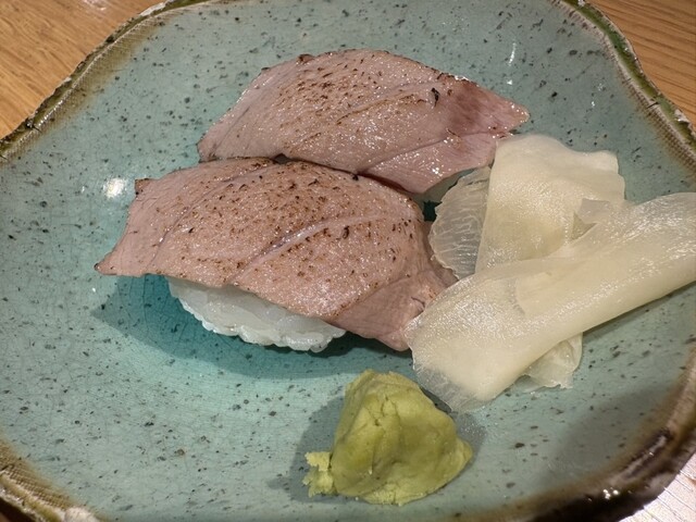 〆は、炙り中トロ寿司に、真秀を。