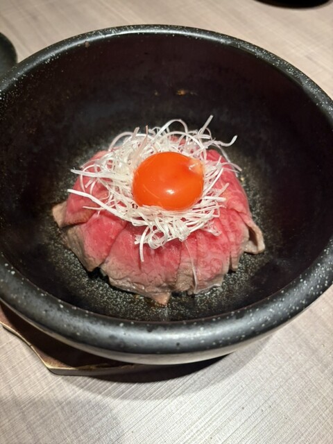 松茸と酢橘のユッケはユッケは丁度いい大きさの味付けだけではなく、和牛本来の旨みを感じられるユッケです。