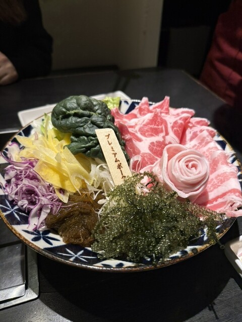 豚の甘みを強く感じました。バラ肉と赤身の多いロースがあり、私はバラ肉派でした。海ぶどうや、もずくもしゃぶしゃぶします。シークァーサーポン酢もアレンジ効いてて沖縄らしくて美味しかったです。