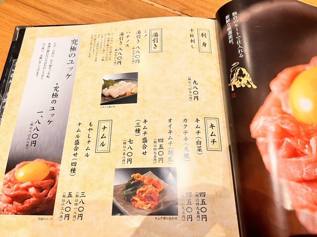玄関で靴を脱ぎ個室へ案内。二人では贅沢な広い部屋ですね。帰りに確認すると店内中央には庭があって、庭を見ながら焼肉できる個室もあり、店の雰囲気はいいですね。