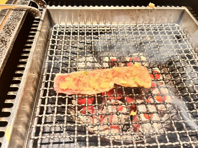 注文したのは「熟成上カルビ極みダレ(2,068円)」、「熟成ロースタレ(1,419円)」、「壺漬けゲタカルビ極みダレ(1,518円)」。ゲタカルビは炭火の中央で焼くのではなく、周りにUの字に置いてなどアドバイスを頂けます。