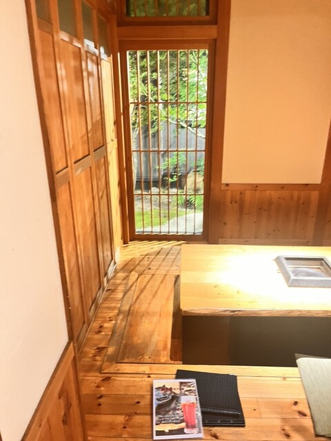 店を入るとガラス越しに庭が見え、その横にはワイン