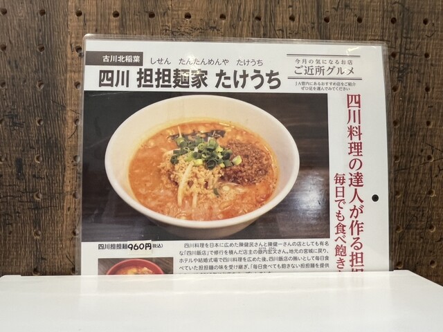 店主は日本で四川料理を広めたといわれる陳健民、陳健一父子の「赤坂四川飯店」で修業したとの記事が店頭に掲げられています。ならば「四川担々麺」の一択かな、ということで二人とも同じ注文に