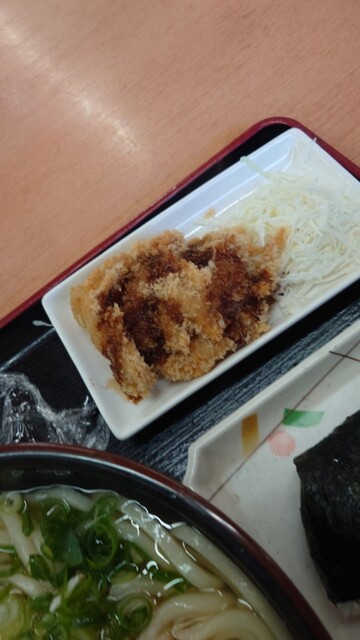 まるふじでかけ三玉そのまま、キャベツのかき揚げ、おにぎらずのコロッケ、730円也paypay払い