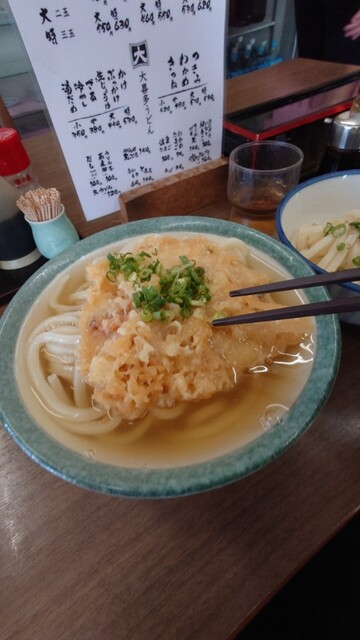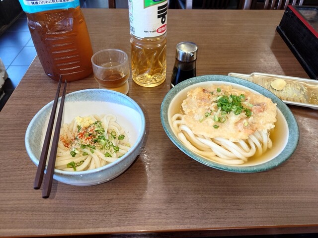 大喜多の冷や冷や天二玉、醤油うどん冷たいの、900円也