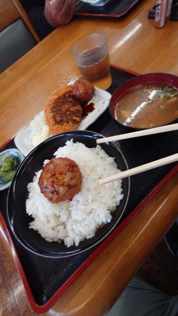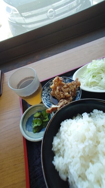 つるぎで丼飯、かけ二玉、漬物(サービス)、根菜の炊いたん、700円也