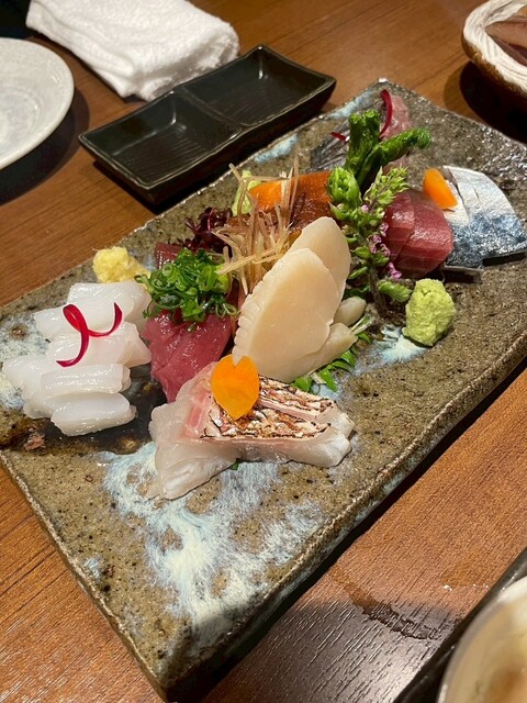 こちらの真骨頂は、なんといっても日本酒の品揃え。花邑、寒菊、よこやま、而今など、入手困難な銘酒から定番まで幅広く取り揃えています。半合から注文できるシステムも嬉しく、色々な種類を少しずつ楽しめるのが魅力的。