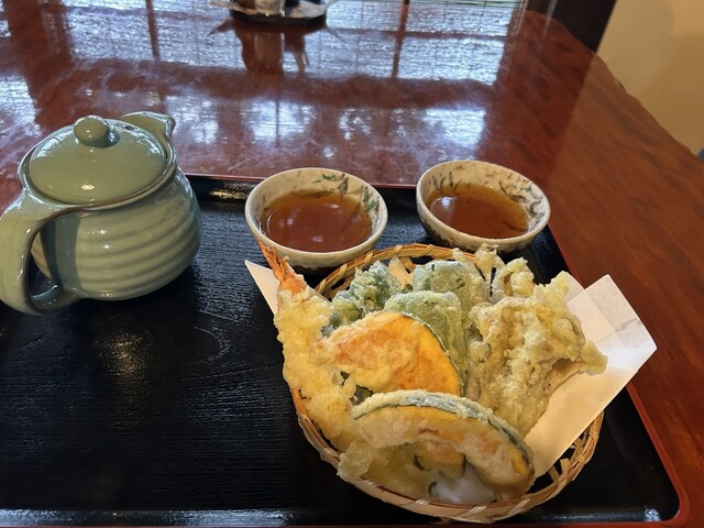 注文は前と同じ、もりそば2つに天ぷら盛り合わせ。でもお腹空いてたので自分のぶんだけ大盛にしました。