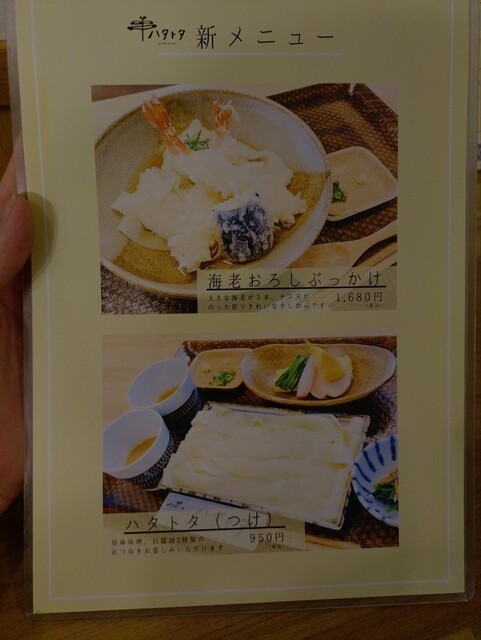 ということで、お店の名前を冠するきしめん【ハタトタ】を大盛りの かけ (←温かいスープのこと)を注文(о´∀`о) あとサイドでむかご串天ぷら♪
