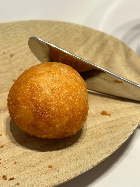 個人的な好みはフェンネル練り込み揚げパン。赤ワインパンは腹に余裕があればしっかり食べたかったです。酸と香りが立ち昇るのが面白いです。メインとパンと赤ワインを合わせてね、ととれます。